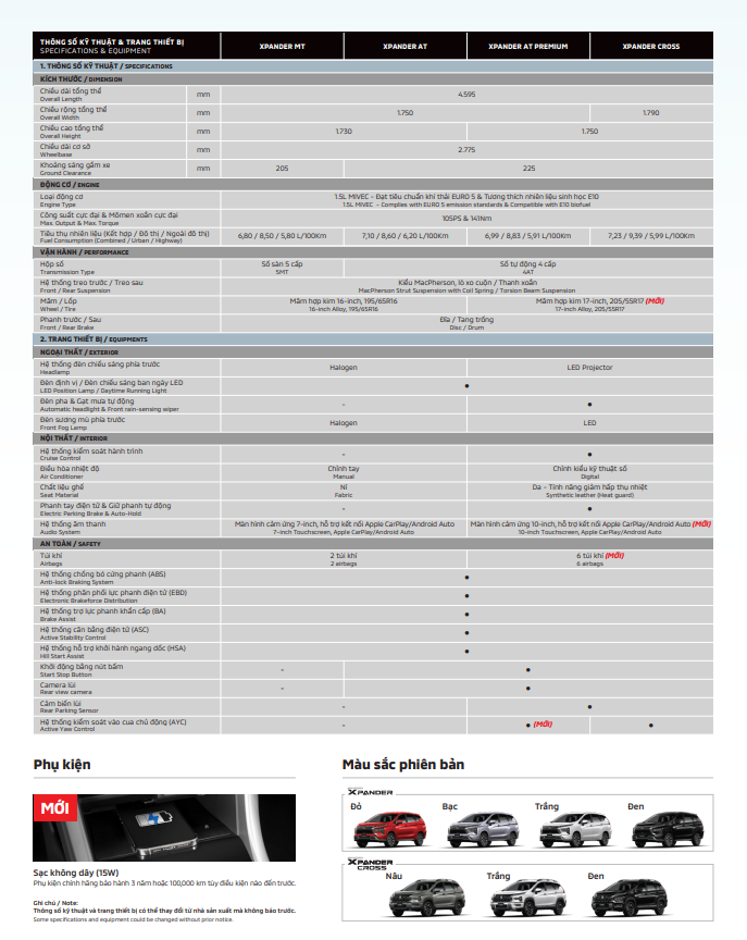 Thông số kỹ thuật chi tiết của Xpander Premium:
